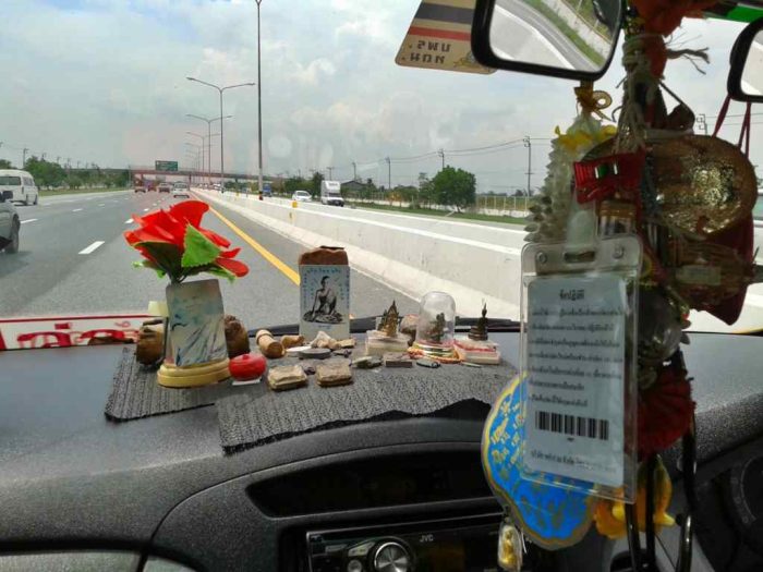 If you didn’t know already, superstition, spirituality and spirit worship are all deeply ingrained in Thai culture. Not to have Buddha, amulets, and the various charms adorning the dashboard or rear-view mirror might simply be asking for trouble. They are not there merely as a show of faith, to a believer they could mean the difference between life and death.